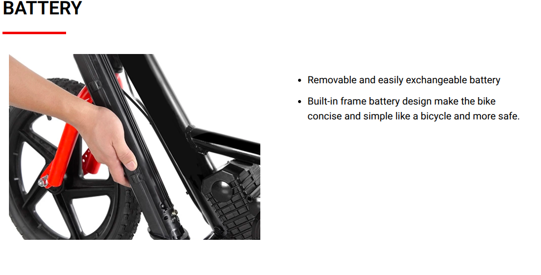 In terms of finish, you will not be disappointed, in fact Apollo used quality parts: Aluminum frame and handlebars which allow this balance bike to weigh only 9KG including battery, and a Lithium battery giving the possibility of use the bike for up to 1h15min in constant use with only a charge of 2h30!